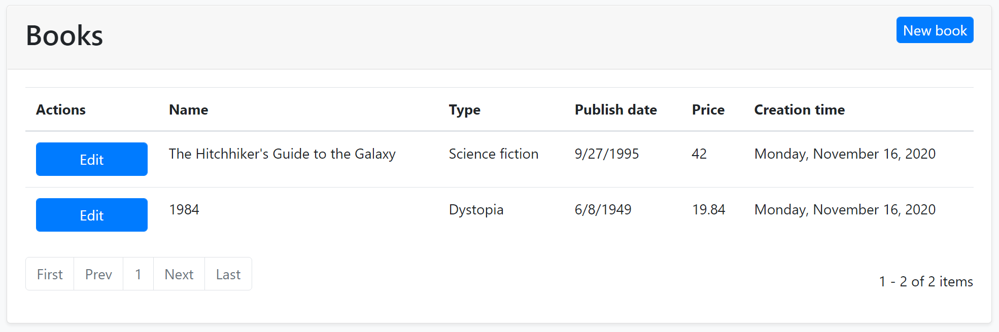 Here the complete code to create the book management CRUD page, that has been developed in the last two parts: