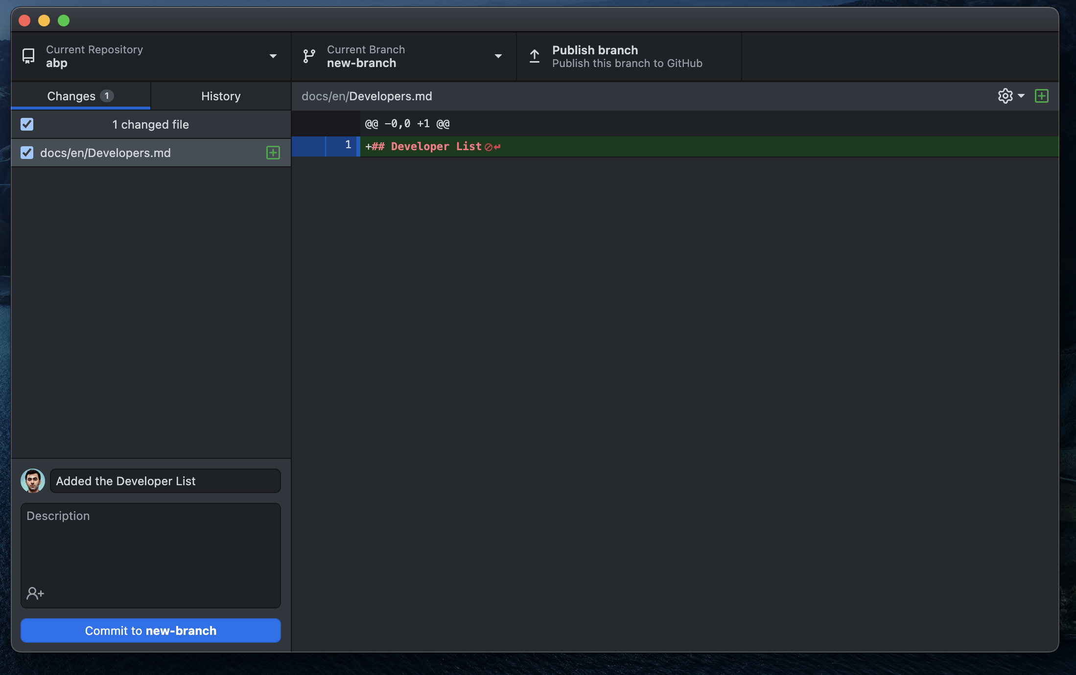 As you can see, all changes made to the repo are reflected directly on GitHub Desktop.