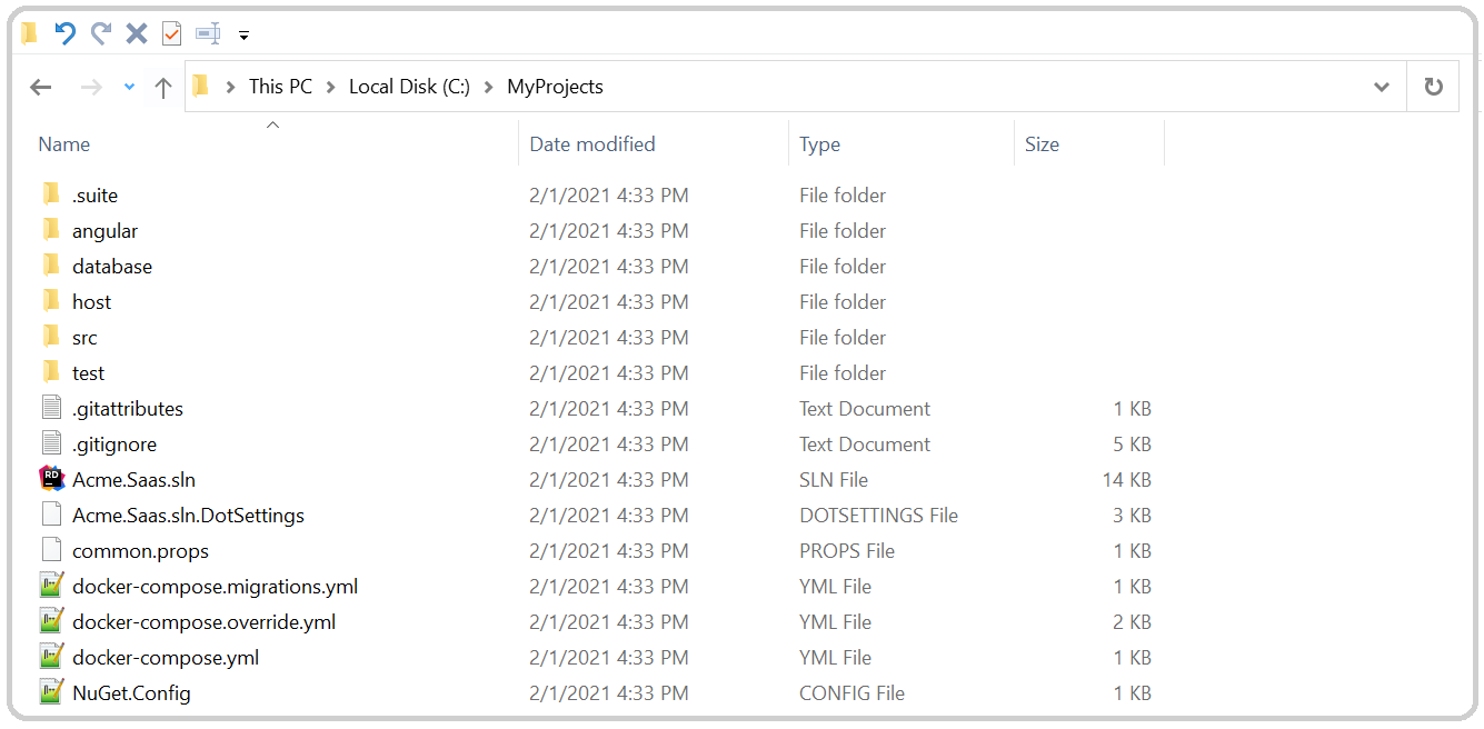 Acme.Saasis the project name. The solution file will be named asAcme.Saas.sln. And the namespaces ofc#classes will start withAcme.Saas.*prefix. -