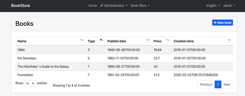 如下图所示,只是在表格 右上方 添加了 New book 按钮: