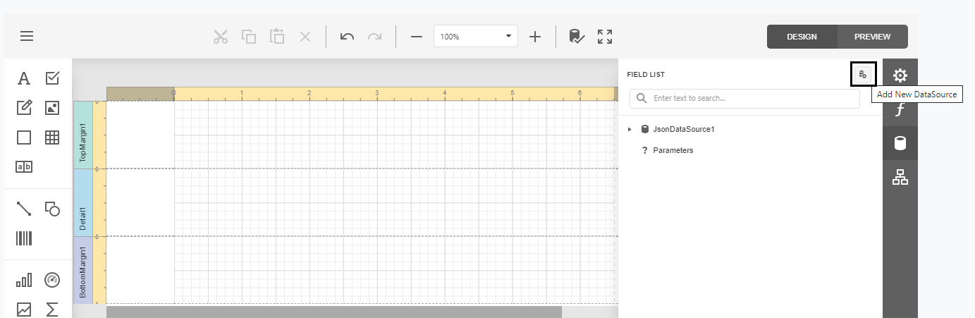 You can now see the Add New DataSource icon in the Field List: