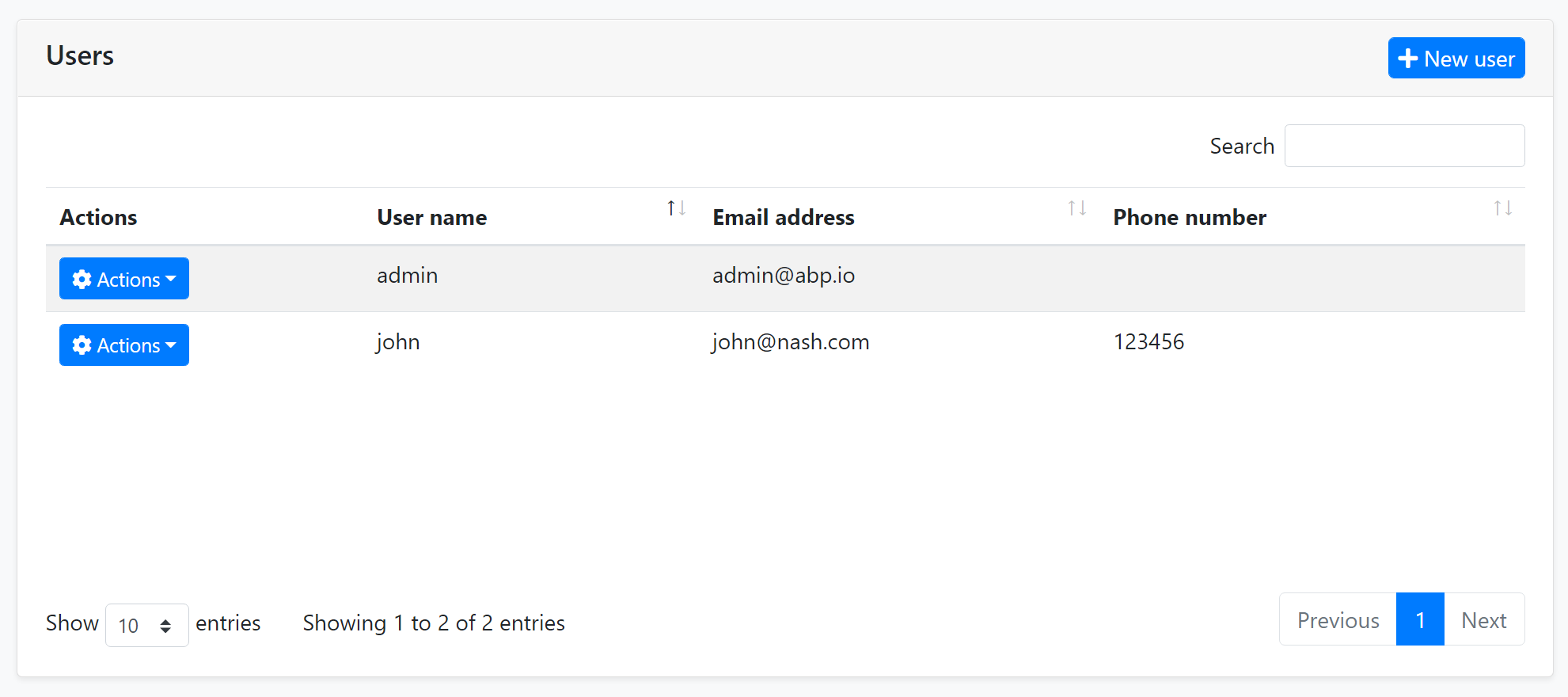 A Data Table (aka Data Grid) is a UI component to show tabular data to the users. There are a lot of Data table components/libraries and you can use any one you like with the ABP Framework. However, the startup templates come with the DataTables.Net library as pre-installed and configured. ABP Framework provides adapters for this library and make it easy to use with the API endpoints.