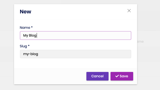 A screenshot from the new blog creation modal: