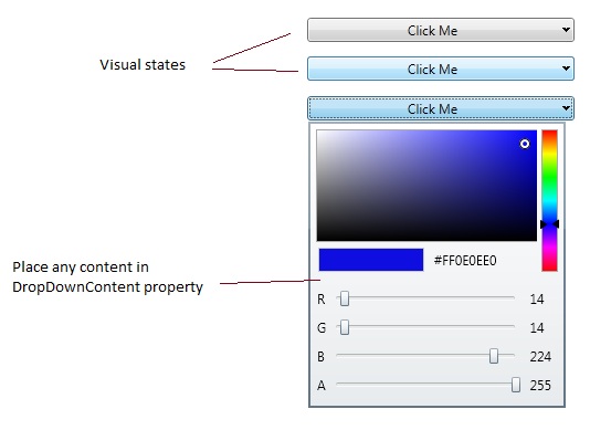 | DropDownContentBackground | Gets or sets the Background of the popup. |